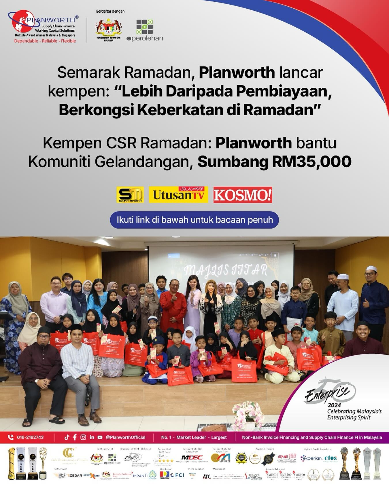 KUALA LUMPUR: Planworth Global Factoring Sdn Bhd (Planworth), syarikat pembiayaan dan rantaian bekalan tanpa cagaran yang terkemuka, meneruskan komitmennya sebagai organisasi prihatin dan bertanggungjawab sosial dengan menyalurkan sumbangan berjumlah lebih RM35,000 kepada golongan memerlukan bersempena kempen Tanggungjawab Sosial Korporat (CSR) Ramadan 2025.