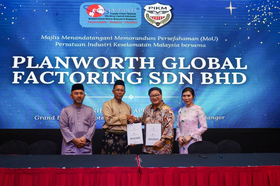 The Malaysian Security Industry Association (PIKM) has signed a Memorandum of Understanding (MoU) with Planworth Global Factoring Sdn Bhd (Planworth), a recipient of numerous awards including the SME Corp Enterprise 50 Award 2024 and a leading player in invoice financing and supply chain financing in Malaysia. Planworth is now well known, increasingly popular and widely trusted as a reliable alternative financial financing provider among local companies.